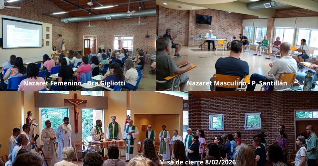 Bajo el lema “PARA SER TRANSFORMADOS POR EL ESPÍRITU… HAGAN TODO LO QUE ÉL LES DIGA”, los consagrados y consagradas de las comunidades de Nazaret, del 1 al 8 de febrero, tuvieron su retiro espiritual anual. La Casa de Encuentro y Oración San Juan Evangelista de Tristán Suárez recibió a quienes llegaron de distintas ciudades de Argentina, Uruguay y Ecuador. Fueron días de renovación en la oración y la fraternidad entre los miembros de ambas Ramas. El tema que marcó el camino de esos días fue el pasaje de la Palabra en donde Jesús se encuentra con Nicodemo (cf. Jn 3, 1-8). Antonio Santillán, sacerdote claretiano, fue quien estuvo a cargo de las charlas que iluminaron las jornadas. Cada día contaba con un generoso tiempo para orar y meditar personalmente. Luego de la merienda se continuaba con el compartir fraterno y la oración por comunidades mixtas que se conformaron según las etapas de vida. Estos espacios concluían con la celebración de la Eucaristía. Los últimos dos días de retiro, los hermanos y hermanas trabajaron por Ramas: el Padre Santillán acompañó a Nazaret Masculino y la Dra. Graciela Gigliotti Senosiain llegó especialmente para ofrecer una charla a las hermanas de Nazaret Femenino. Una gracia especial para todos, fue la visita del Padre Ricardo quien llevó su bendición pastoral en la celebración de la Eucaristía de cierre del día domingo. ¡Celebramos la vida consagrada como don y profecía de la Iglesia y para el mundo!